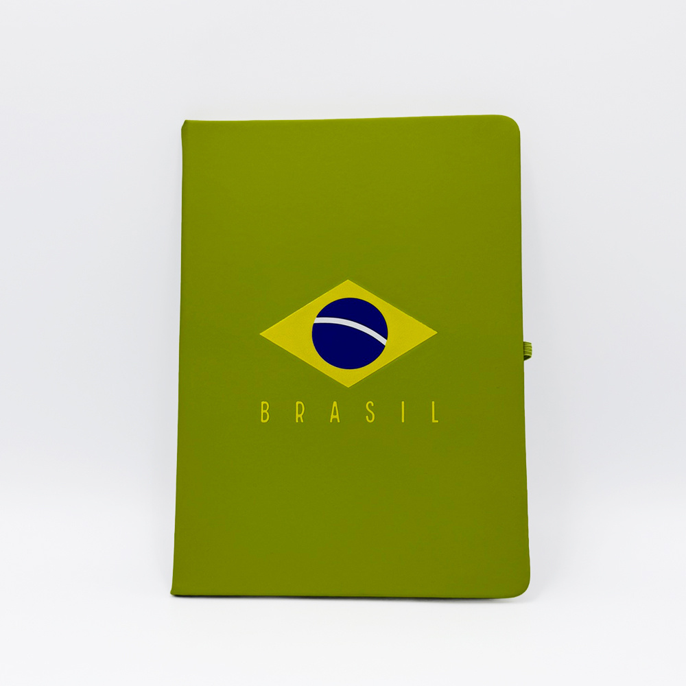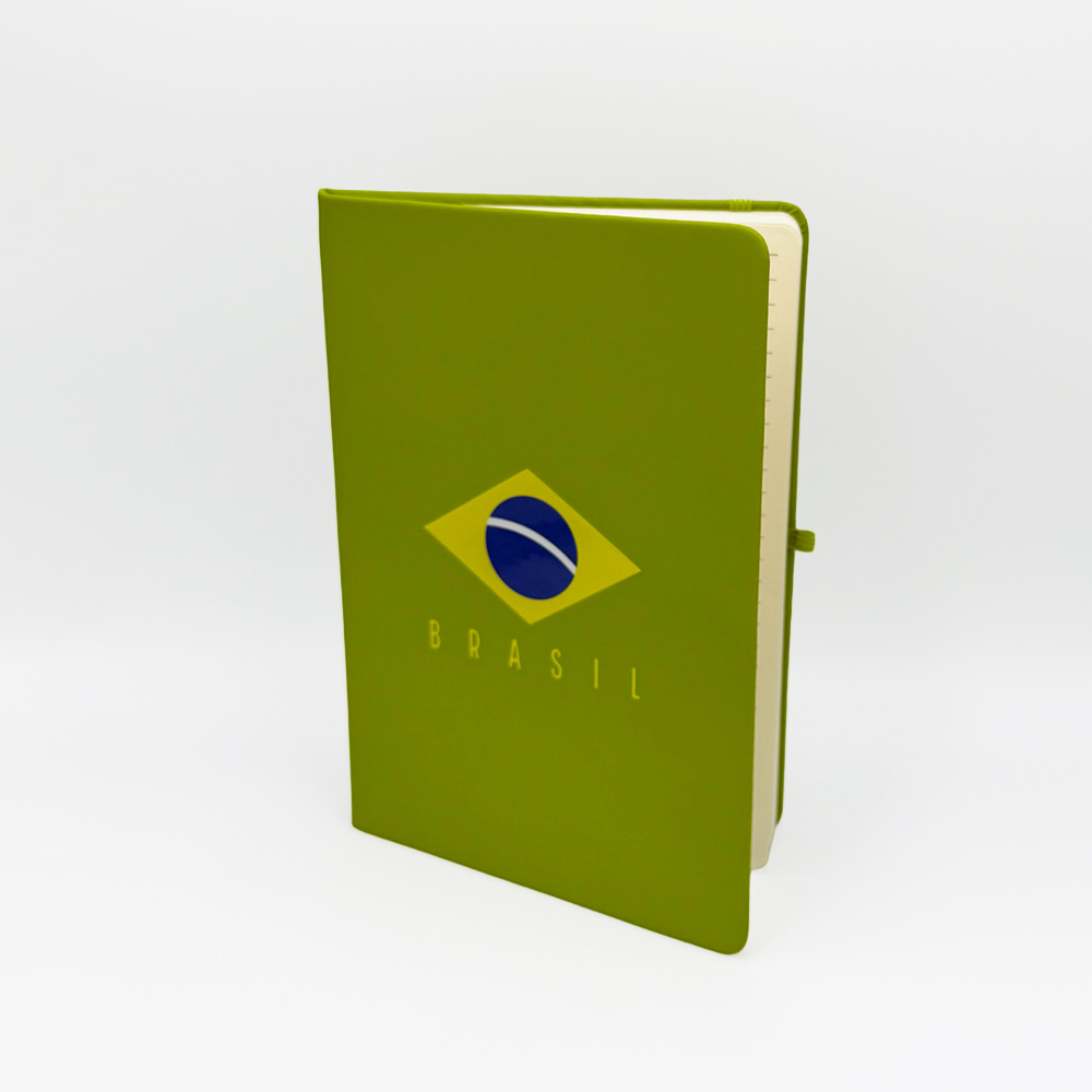 Um pedaço do Brasil para carregar com você. O Caderno Grande Brasil traz na capa o símbolo mais icônico da nossa bandeira em uma composição clean e sofisticada — perfeito para registrar ideias, roteiros de viagem e memórias especiais.