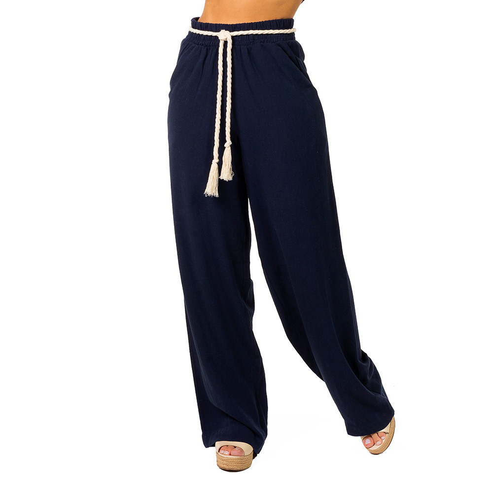 CALÇA AMPLA LINHO MARINHO