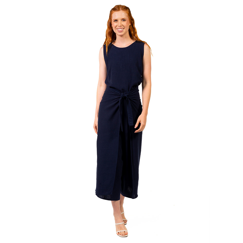 Agora confeccionada em linho, um tecido leve, fresco e respirável, essa peça garante bem-estar e elegância o dia todo. O detalhe da faixa ajustável permite amarração na frente ou atrás, valorizando a cintura de forma versátil. Com modelagem ampla e caimento fluido, veste com conforto do tamanho 36 ao 46. Sem bolsos, o acabamento fica ainda mais delicado e elegante.