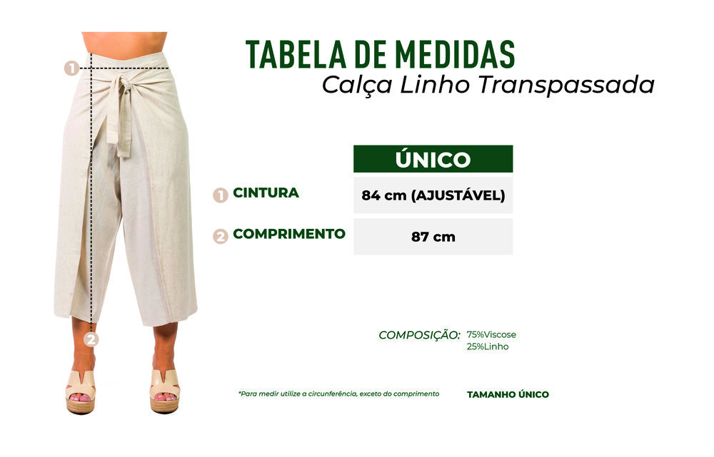 TABELA DE MEDIDAS DA CALÇA TRANSPASSADA LINHO