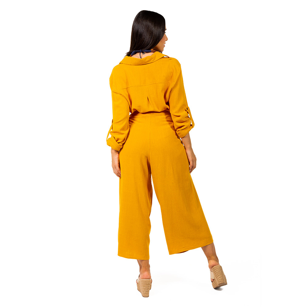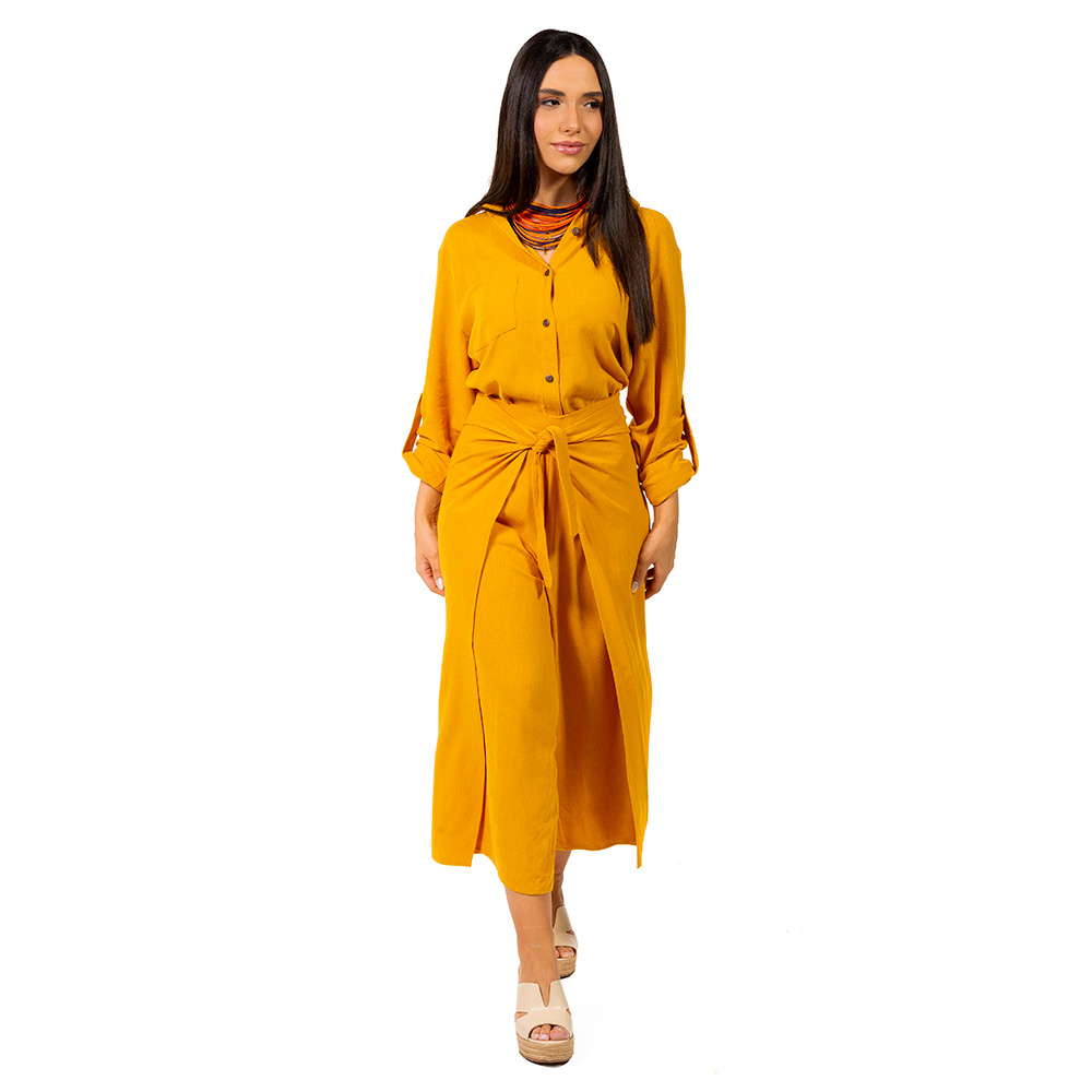 CALÇA TRANSPASSADA LINHO MOSTARDA