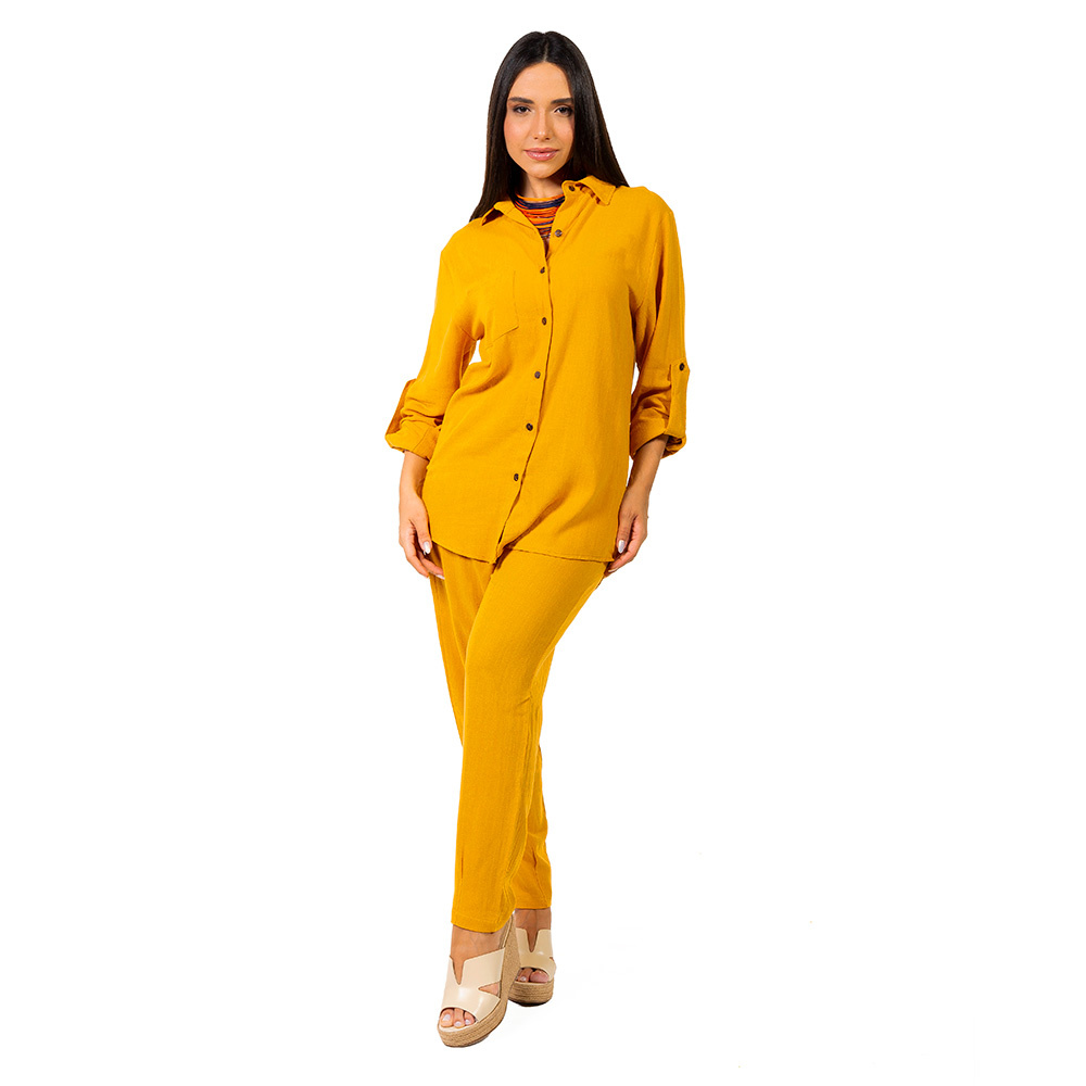 CAMISA ALONGADA LINHO ANA MOSTARDA