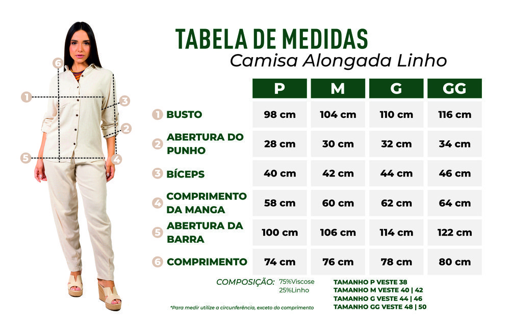 TABELA DE MEDIDAS CAMISA ALONGADA LINHO