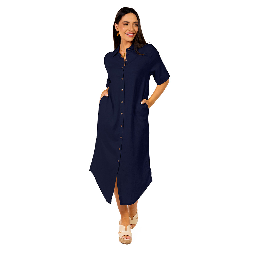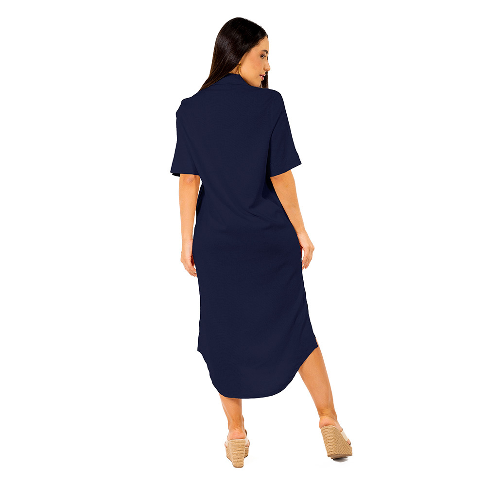 CHEMISE VESTIDO LINHO MIDI MARINHO