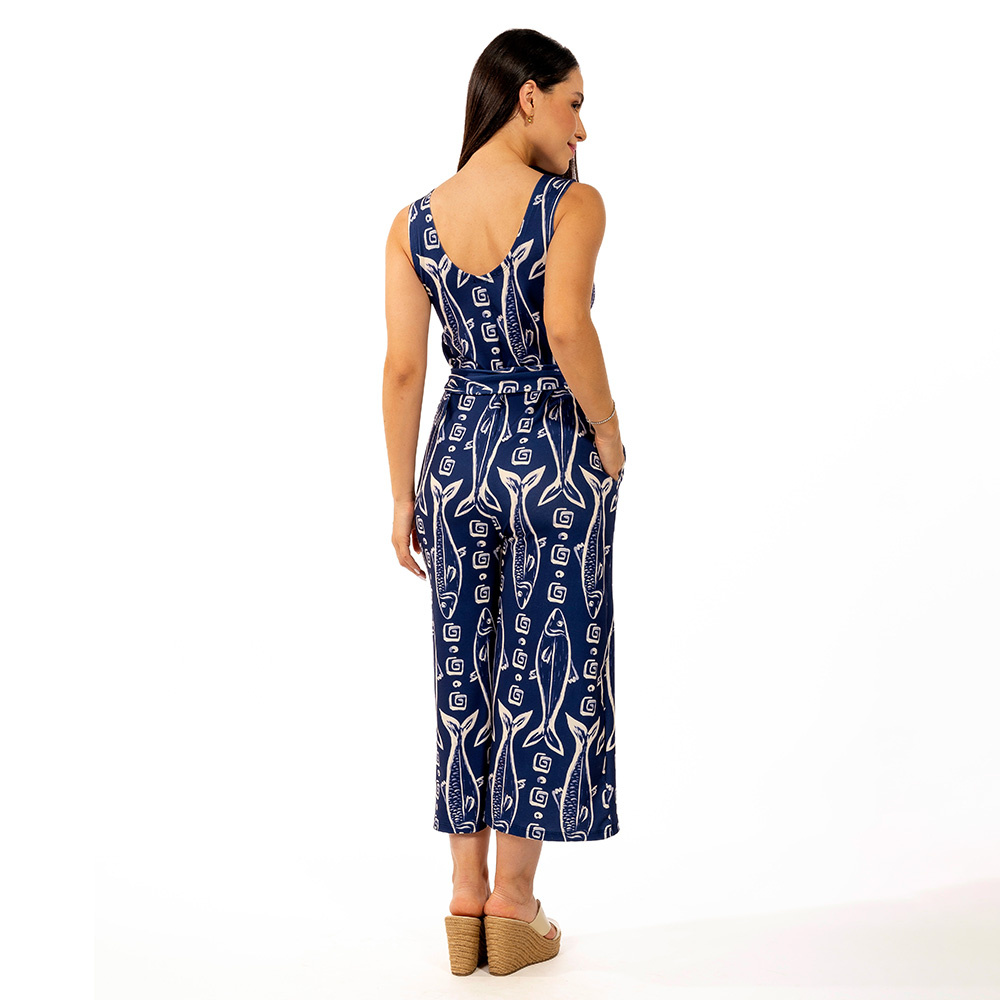 O macacão feminino com bolso foi desenvolvido no modelo regata alça, com decote em V mais arredondado que valoriza o colo de forma clássica, acompanha faixa que você amarrar na cintura como laço na parte frontal ou lateral para marcar bem a cintura, com bolso lateral e perna mais ampla. A estrutura da modelagem foi pensada para se ajustar em todos os biotipos, por isso escolha o melhor tamanho para você conforme nossa tabela de medidas. Composição 96% poliéster 4% elastano, desenvolvido com impressão digital o que garante sua qualidade e não precisa passar após lavagem.