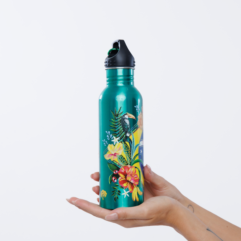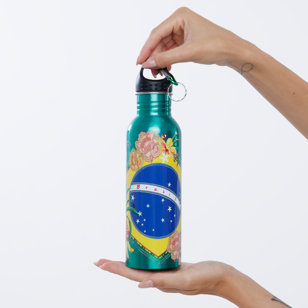 Leve a exuberância da natureza brasileira com você aonde for! O Squeeze Alumínio Canindés Folha Azul combina estampa autoral, alma tropical e funcionalidade em um acessório que é muito mais do que uma garrafa — é um pedaço do Brasil para chamar de seu.