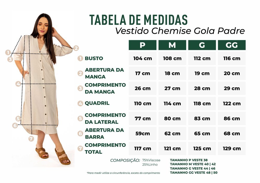 TABELA DE MEDIDAS VESTIDO CHEMISE LINHO GOLA PADRE