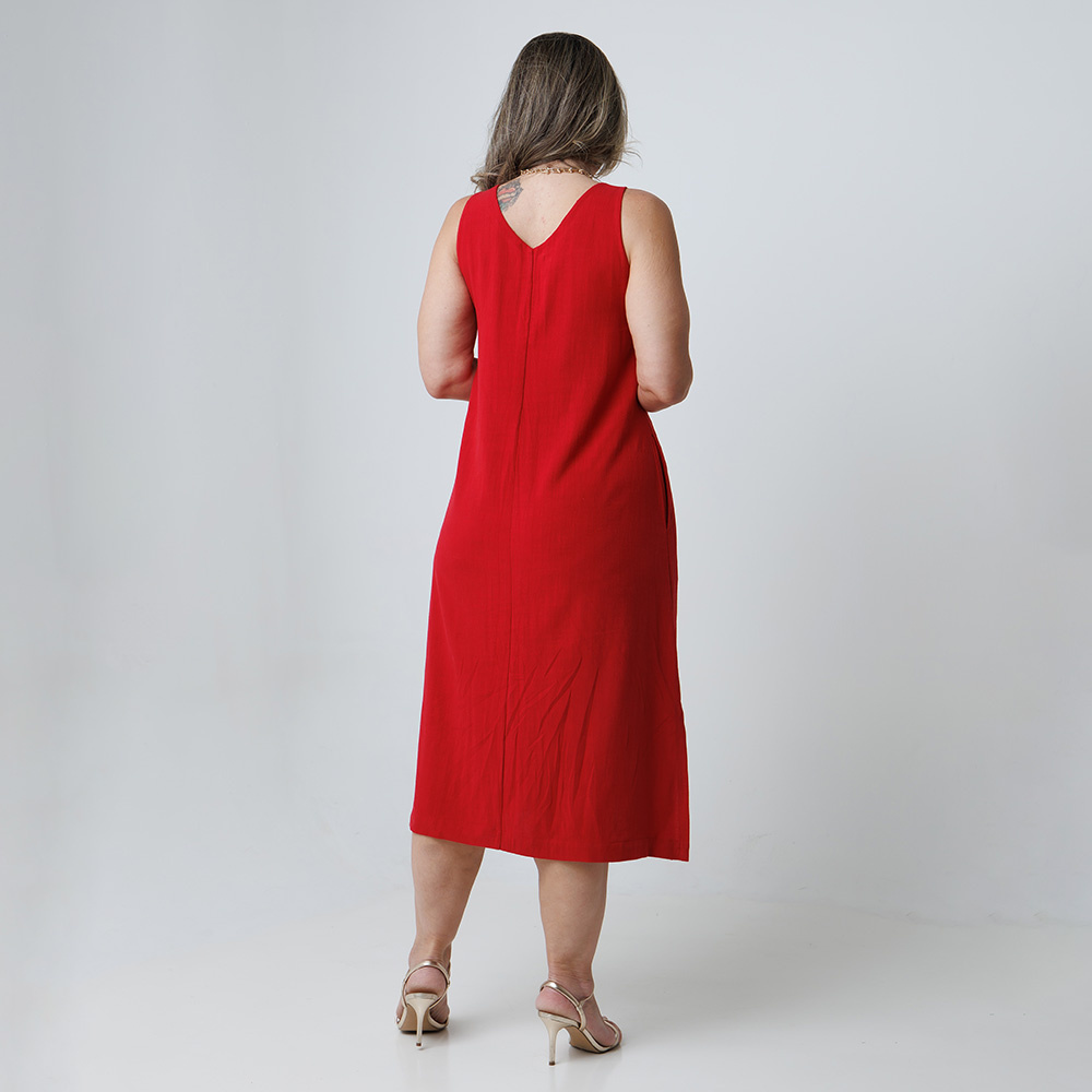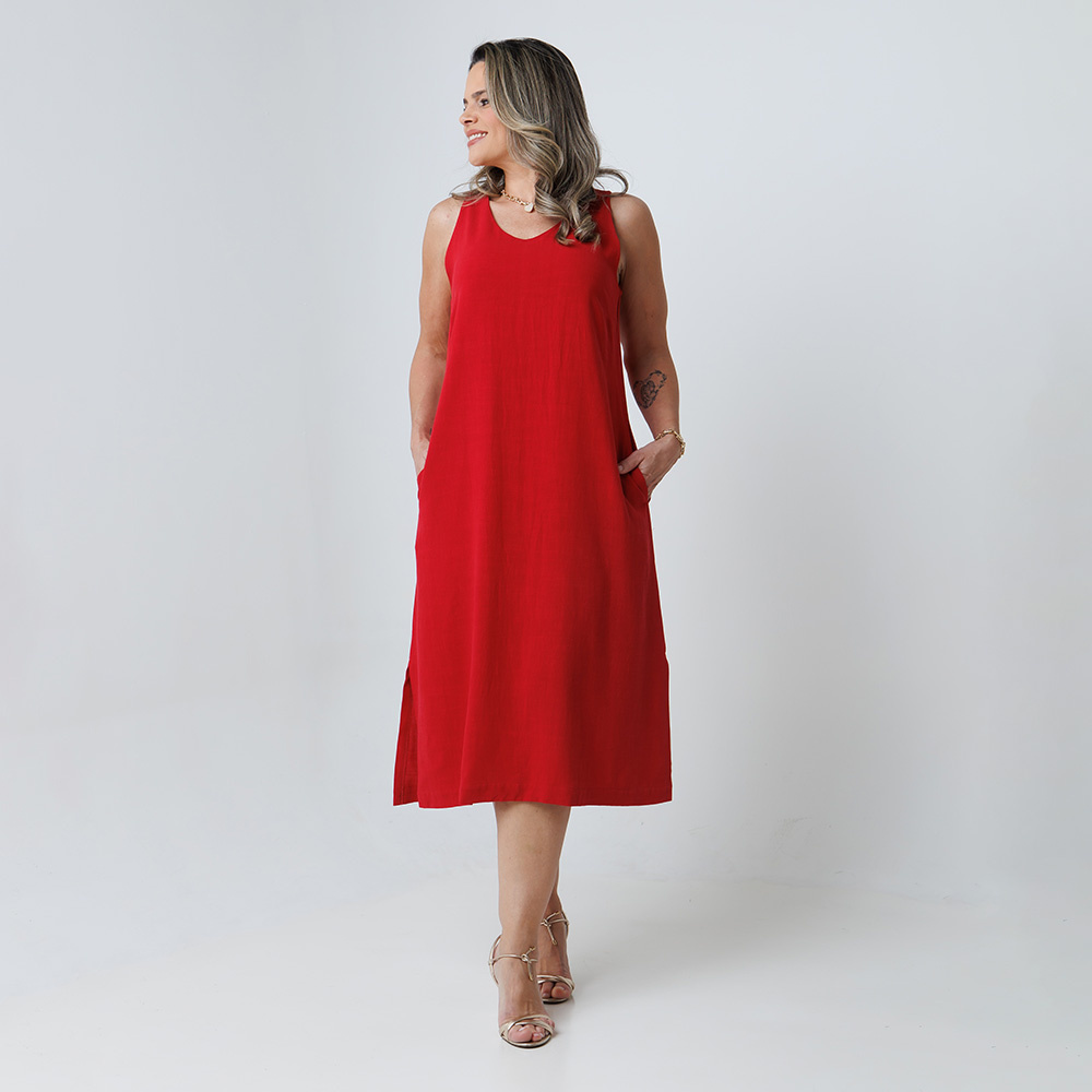VESTIDO LINHO MIDI ESSÊNCIA VERMELHO